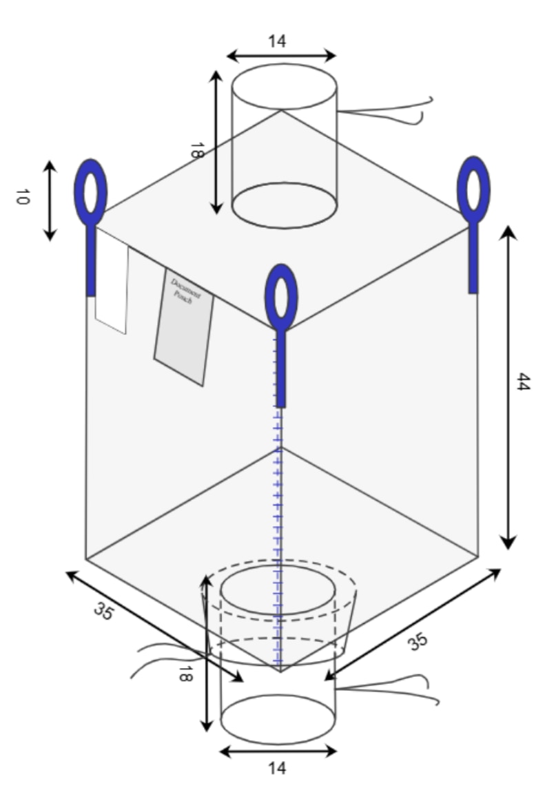 • Bulk Bag 35" x 35" x 44" Spout Top, Spout Bottom SWL