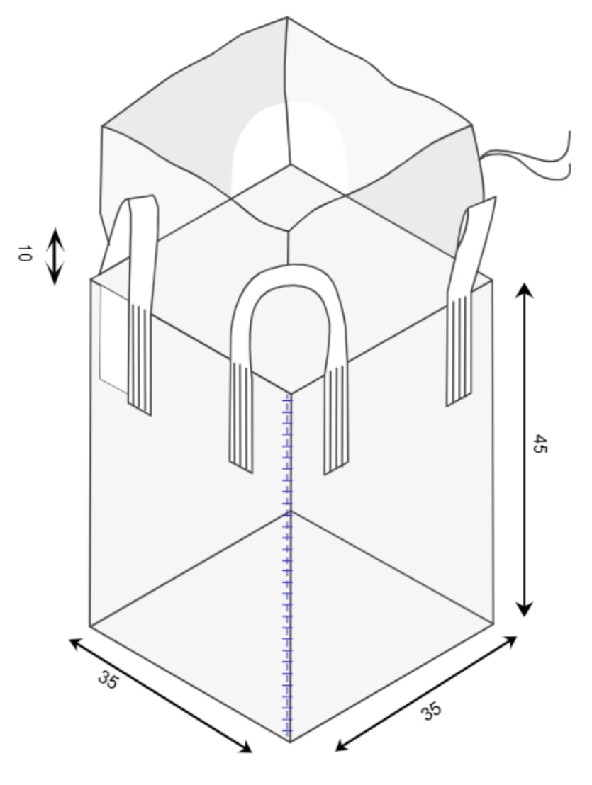 • 35" x 35" x 45" Duffel Top, Flat Bottom SWL: 3000 lbs.